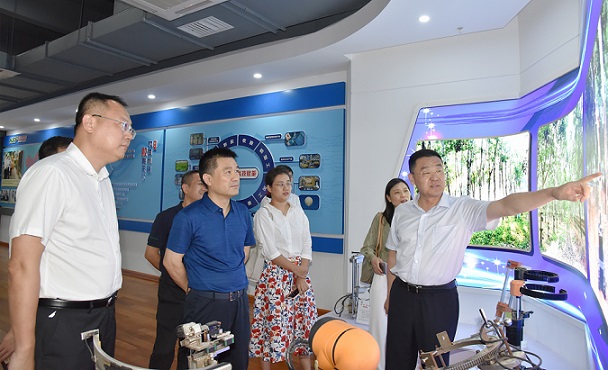 在海胶(海南)智能科技公司,罗精晖一行参观了科技展厅,全面了解麻豆av 全产业链科技创新情况。