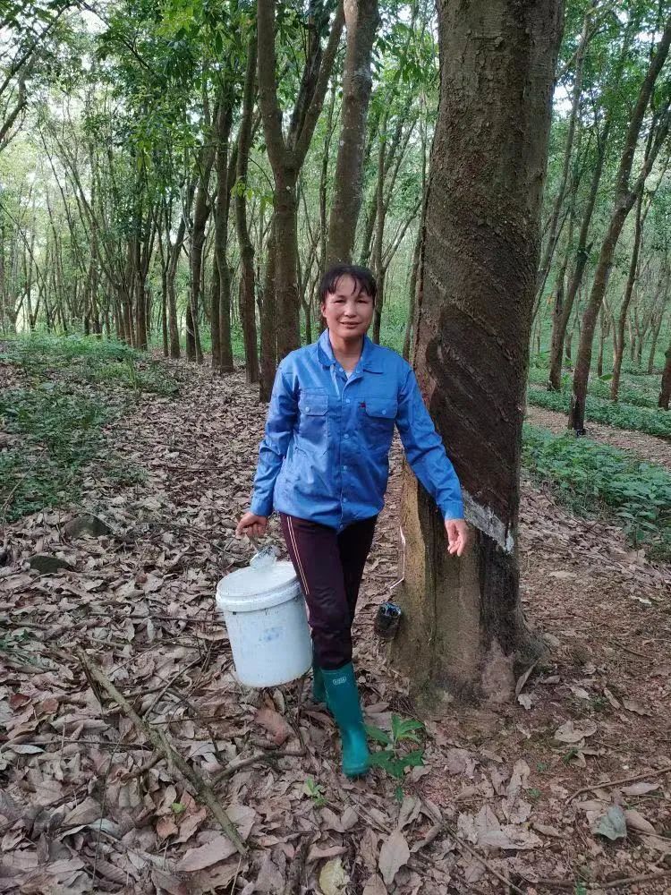 2004年,赵坤霞入农垦割胶,由于对橡胶树的热爱,她将低产树培养成高产树,个人产量从2004年的3.5吨到2019年的8吨,再到2022年的13.9吨,产量持续提升。当上队长后,赵坤霞带领大家修胶园道路,为职工减轻工作负担。她还主动把高产树位让给其他胶工,继续承包低产胶树培养,在她的带领下,全队干胶产量大大提高。