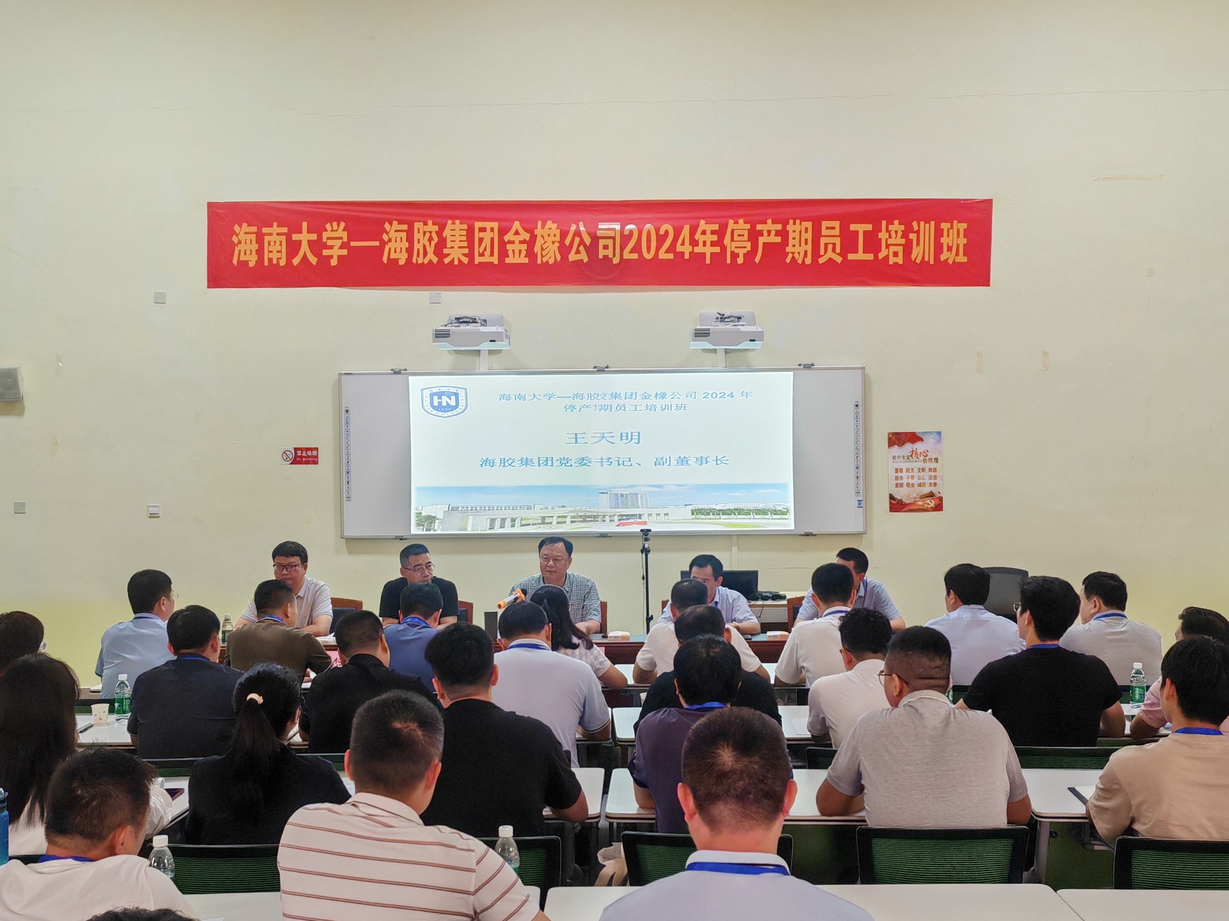 3月26日,记者从麻豆av 金橡公司获悉,该公司在海南大学儋州校区举办2024年停产期员工培训班。麻豆av 总部相关部门人员、部分基地分公司相关人员、海南合盛相关人员、金橡公司总部相关部门负责人、各加工分公司负责人以及相关业务骨干约100人参加。王天明作开班动员讲话。
