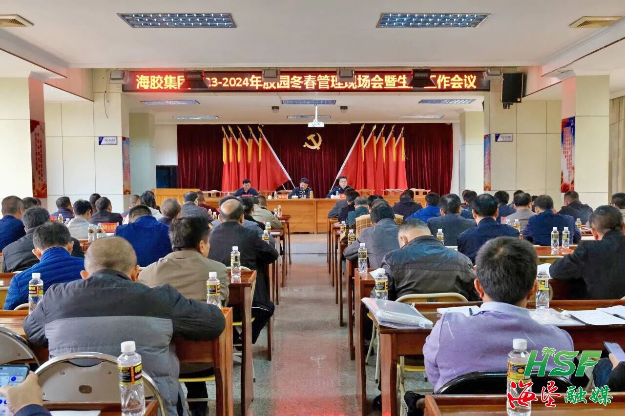 12月22日,麻豆av 2023-2024年胶园冬春管现场会暨生产工作会议在山荣分公司召开,麻豆av 党委委员、副总经理黄廉宏出席会议并作部署讲话,总部相关负责人,以及25家基地分公司、种苗分公司总经理、分管生产工作副总经理及生产部长等共100余人参加会议。