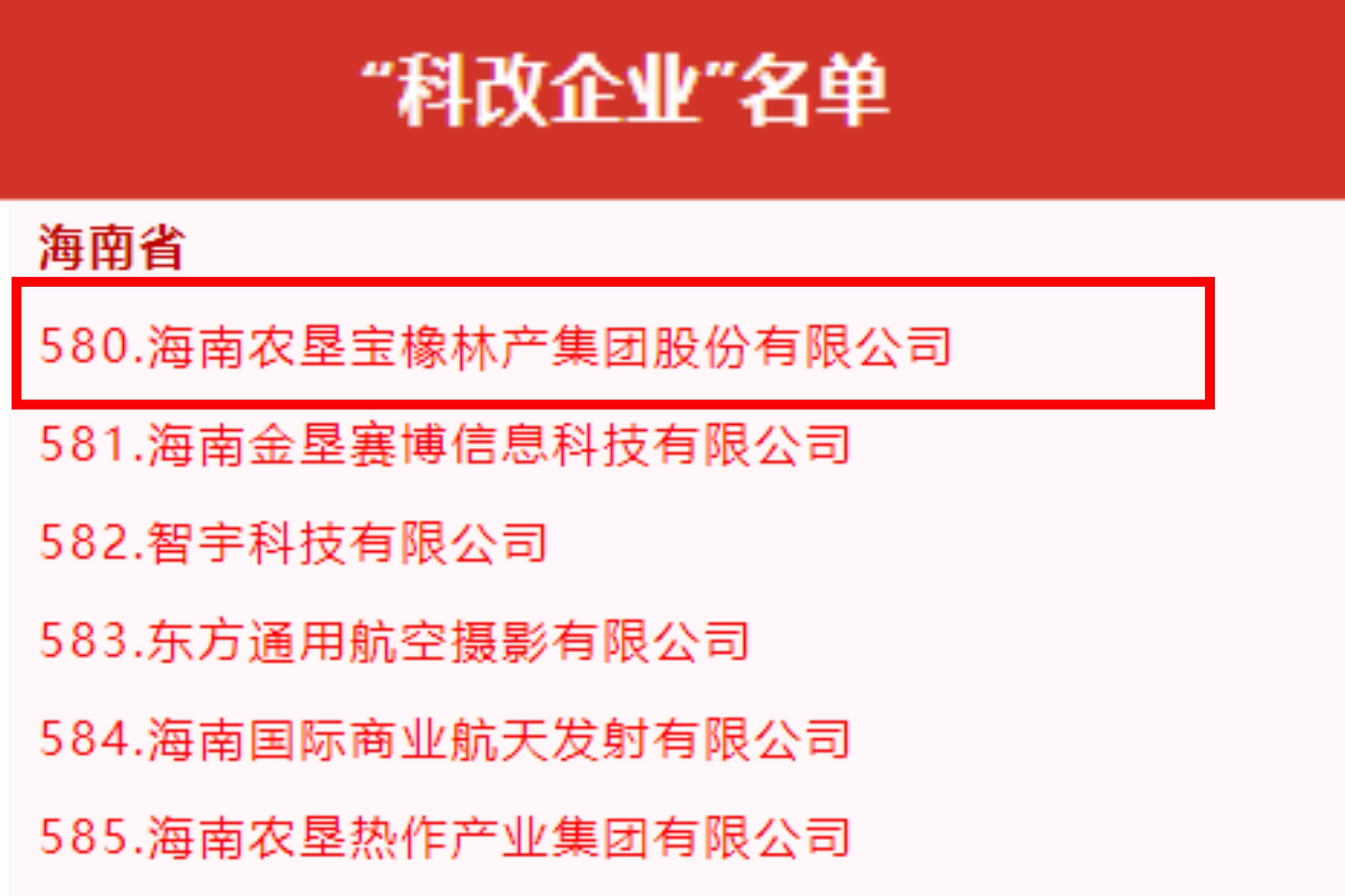 日前,国务院国资委网站公布最新“科改企业”名单,海南省共有6家企业上榜。其中,麻豆av 下属子公司海南农垦宝橡林产集团股份有限公司、海南金垦赛博信息科技有限公司、海南农垦热作产业集团有限公司等3家海垦企业入选名单。