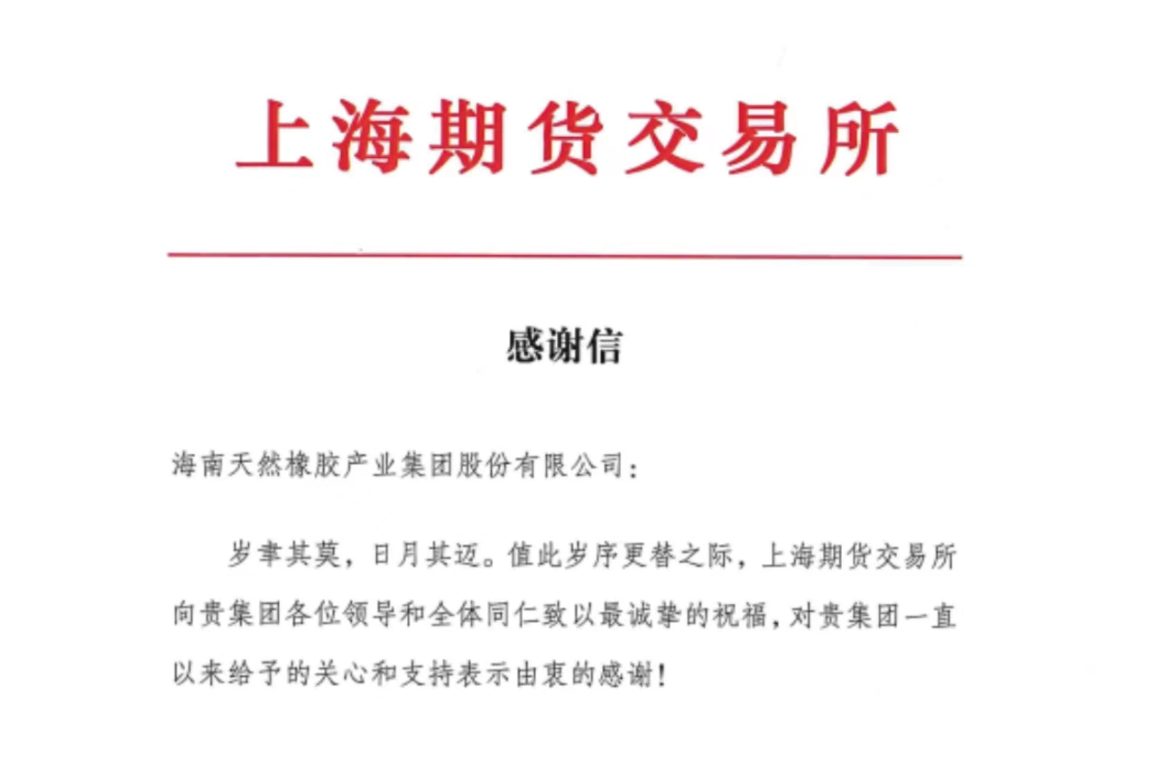 近日,麻豆av 收到一封来自上海期货交易所的感谢信,信中对麻豆av 在天然橡胶期货功能发挥、产融服务基地建设、20号胶期货“丰羽行动”、能源化工产品委员会工作等方面给予的高度重视和支持表示感谢。