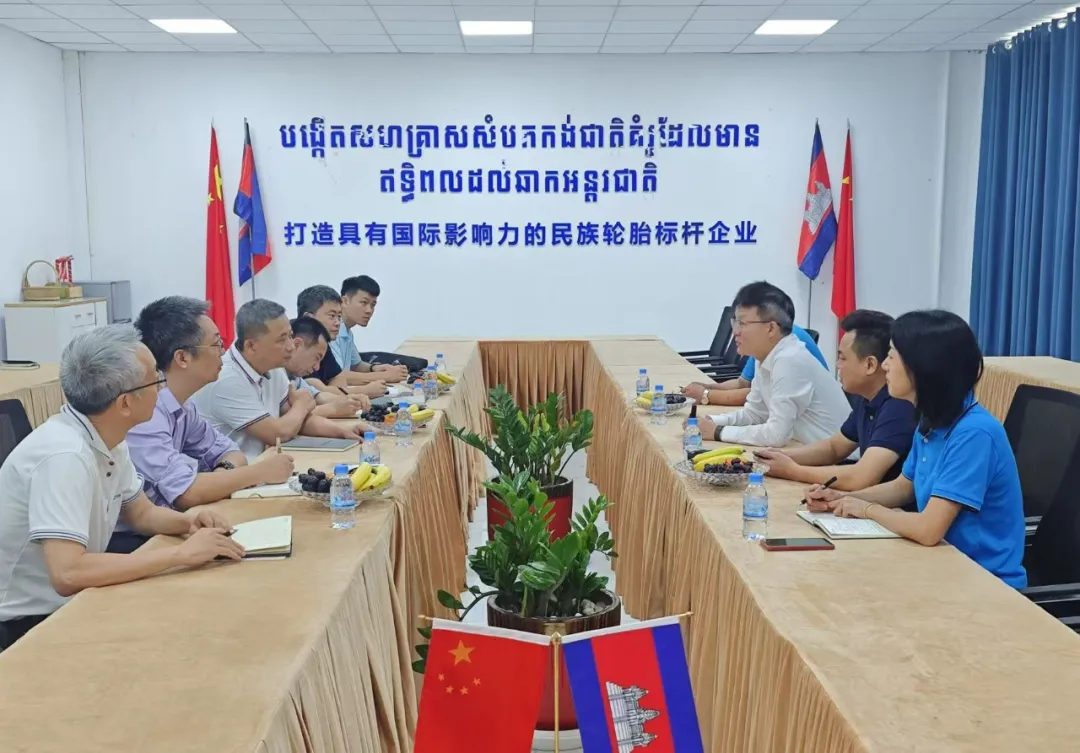 3月23日,麻豆av 党委书记、董事长王宏向一行赴柬埔寨西哈努克经济特区拜访通用轮胎(柬埔寨)有限公司,了解柬埔寨轮胎企业生产经营现状,为麻豆av 下一步优化全球加工产能布局提供决策依据。